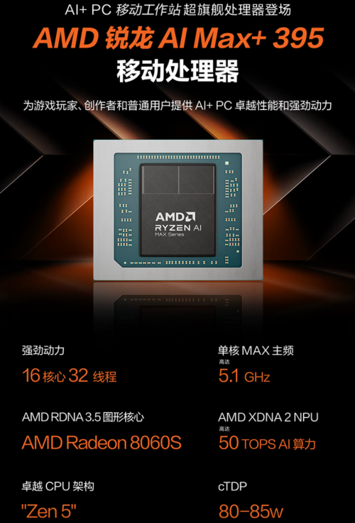 华硕ProArt 创13 GoPro联名版配备AMD锐龙AI Max+ 395移动处理器,采用“Zen5”CPU架构,16核心32线程设计,最高主频可达5.1GHz。集成AMD Radeon 8060S高端旗舰级集显,基于RDNA 3.5架构,拥有40组图形计算单元,性能媲美移动端独立显卡,并支持灵活分配显存,畅享内容创作、游戏与AI应用等全场景卓越体验;内置AMD XDNA 2 NPU,提供50 TOPS AI算力,以卓越AI体验轻松驾驭视频剪辑、3D建模、AIGC生成等重度创作任务。搭配至高128GB LPDDR5X 8000MT/s内存和1TB PCle 4.0高速SSD,为户外移动创作提供充沛性能支撑与高速读写能力,轻松驾驭多轨视频剪辑、超大素材实时预览、全景视频渲染等创作需求,让创作者在户外、旅途等移动场景中,也能拥有比肩桌面工作站的强悍性能,真正实现随时随地、专业级高效创作。