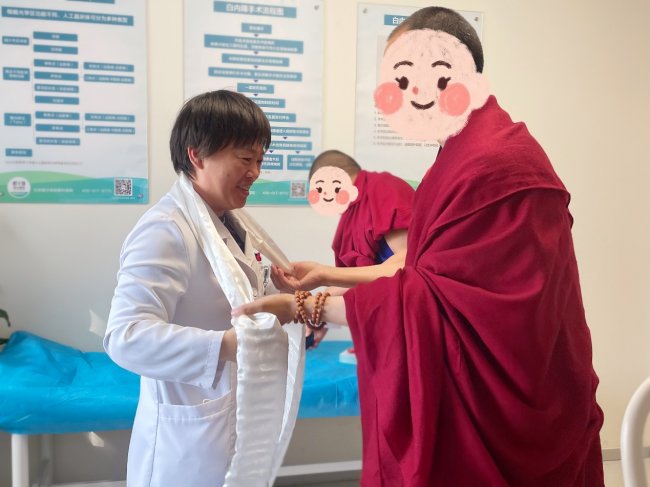 术后,患者的恢复进程远超预期。眼压成功控制在10mmHg的理想水平,眼部胀痛感解除。出院之际,患者为李秋梅主任献上圣洁的哈达。这不仅仅是一份礼物,更是对李秋梅主任精湛医术、悉心照护的最高赞誉。