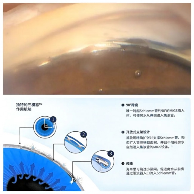 李秋梅主任用形象的比喻解释道:“传统的外引流手术,好比是在眼球上另挖一条‘排水渠’,创伤大、恢复慢,还容易出现瘢痕增生;而海卓思技术则像是在眼睛内部天然的‘下水道’——Schlemm管里,精准地放置了一个微型支架。它不破坏眼部原有结构,而是通过‘疏通修复’的方式,撑开并扩张这条天然的排水管道,恢复房水的自然引流功能。”