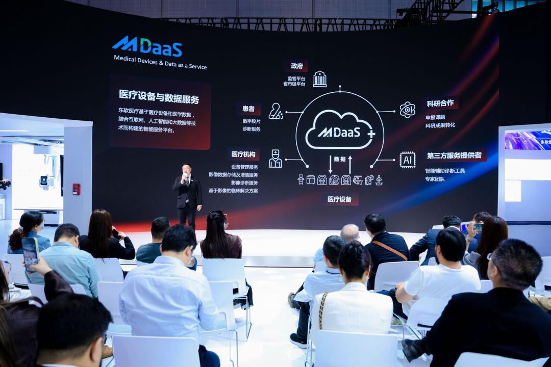 在这一背景下,东软医疗的战略布局显得尤为务实且具前瞻性。凭借全球5万余台装机设备和日均超500 万例的影像数据,东软医疗并未止步于硬件设备的迭代,而是推出了以 MDaaS为核心的数字生态战略——将影像、文本、音频等多模态医疗数据,通过 AI 与云计算整合为可流动、可复用、可增值的战略资产,为政府、医疗机构及科研机构提供从数据管理到智能应用的全栈服务。