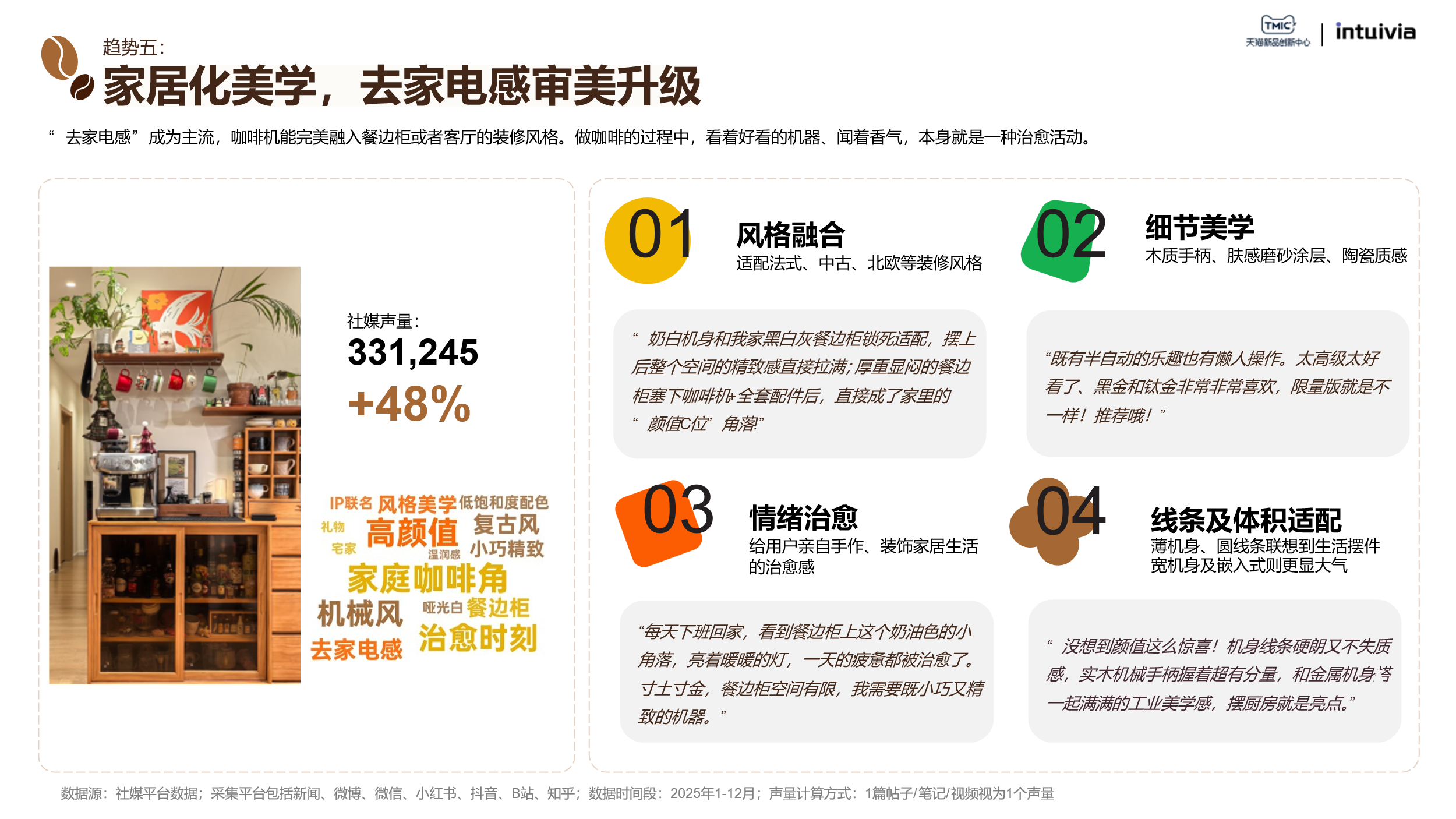 奶白机身、木质手柄、肤感涂层……咖啡机正成为餐边柜的“颜值C位”。