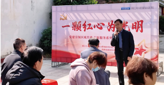 周口中视眼科医院执行院长步东亮在致辞中表示,眼健康是全民健康的重要组成部分,医院始终坚守 “关爱视界,守护光明” 初心,践行医心向党、为人民服务的社会责任。此次与社区共建,是医院党建与公益服务深度融合的重要实践。医院将组建专业医疗团队,规范服务流程、严把服务质量,以精湛技术、医者良心与党员初心,把每一场科普、每一次筛查、每一例救助都做到群众满意、政府放心、社会认可,并以此次活动为起点,长期深耕社区眼健康服务,打造有温度、有影响力的党建共建标杆项目。