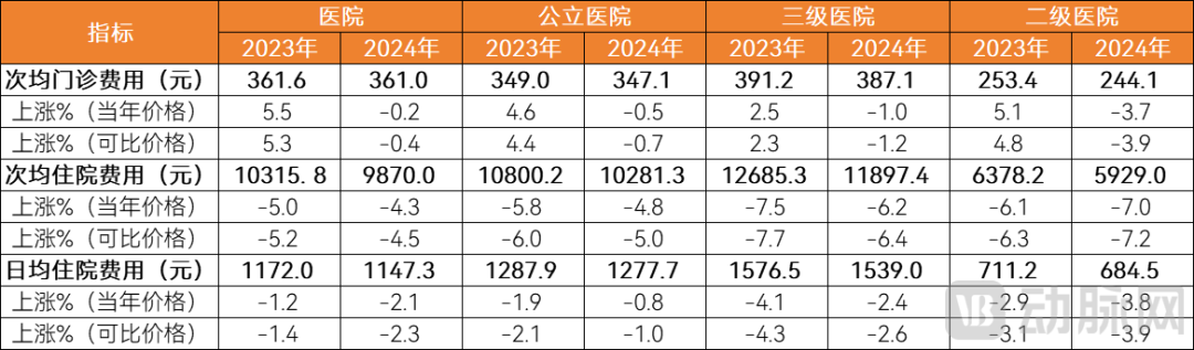 服务量稳步提升的同时,医疗费用也得到有效控制,三级与二级公立医院的次均门诊及住院费用按可比价格计算均呈下降趋势。