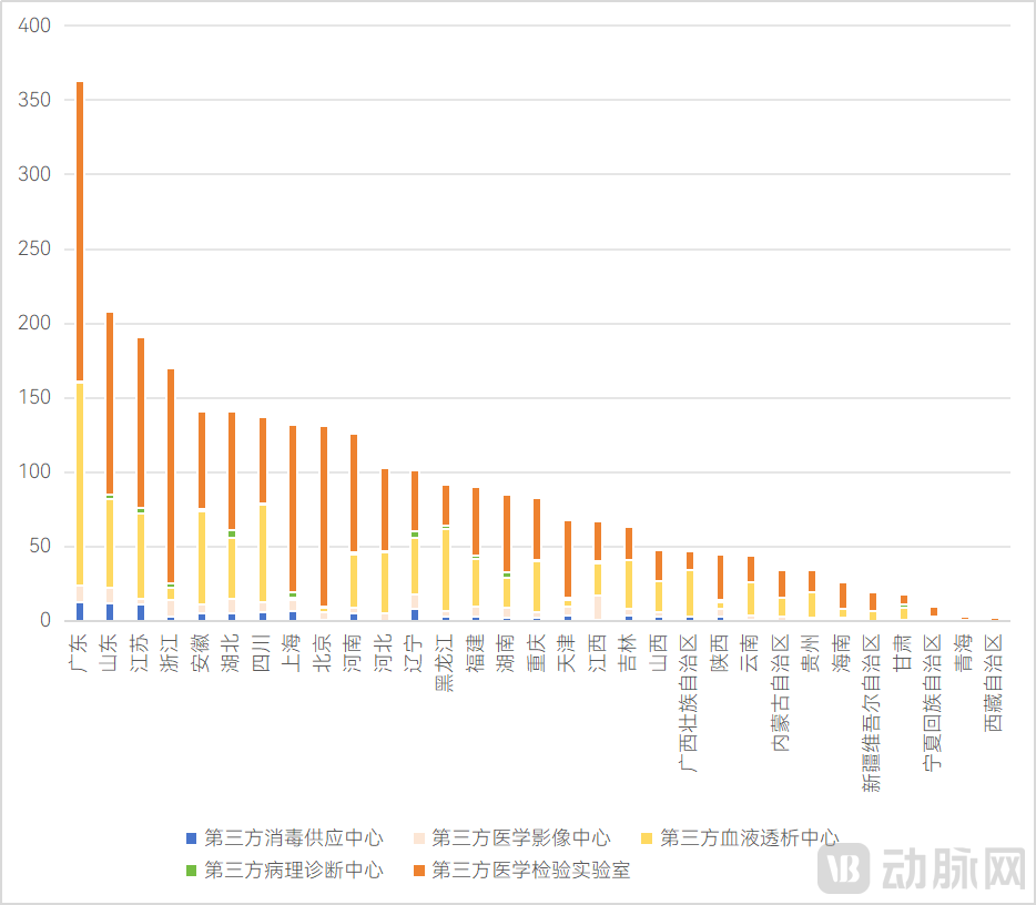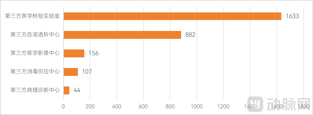 根据动脉智库统计,截至2025年11月,国内第三方医疗服务中心总量已接近3000家,类型与区域分布都比较集中。从机构类型看,第三方医学检验实验室数量最为庞大,达到1633家;第三方血液透析中心紧随其后,为882家。