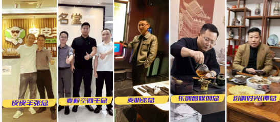 皮皮羊(张总)、麦粒空间(王总)、麦叭(张总)、乐创智娱(刘总)以及纷享时光(谭总)