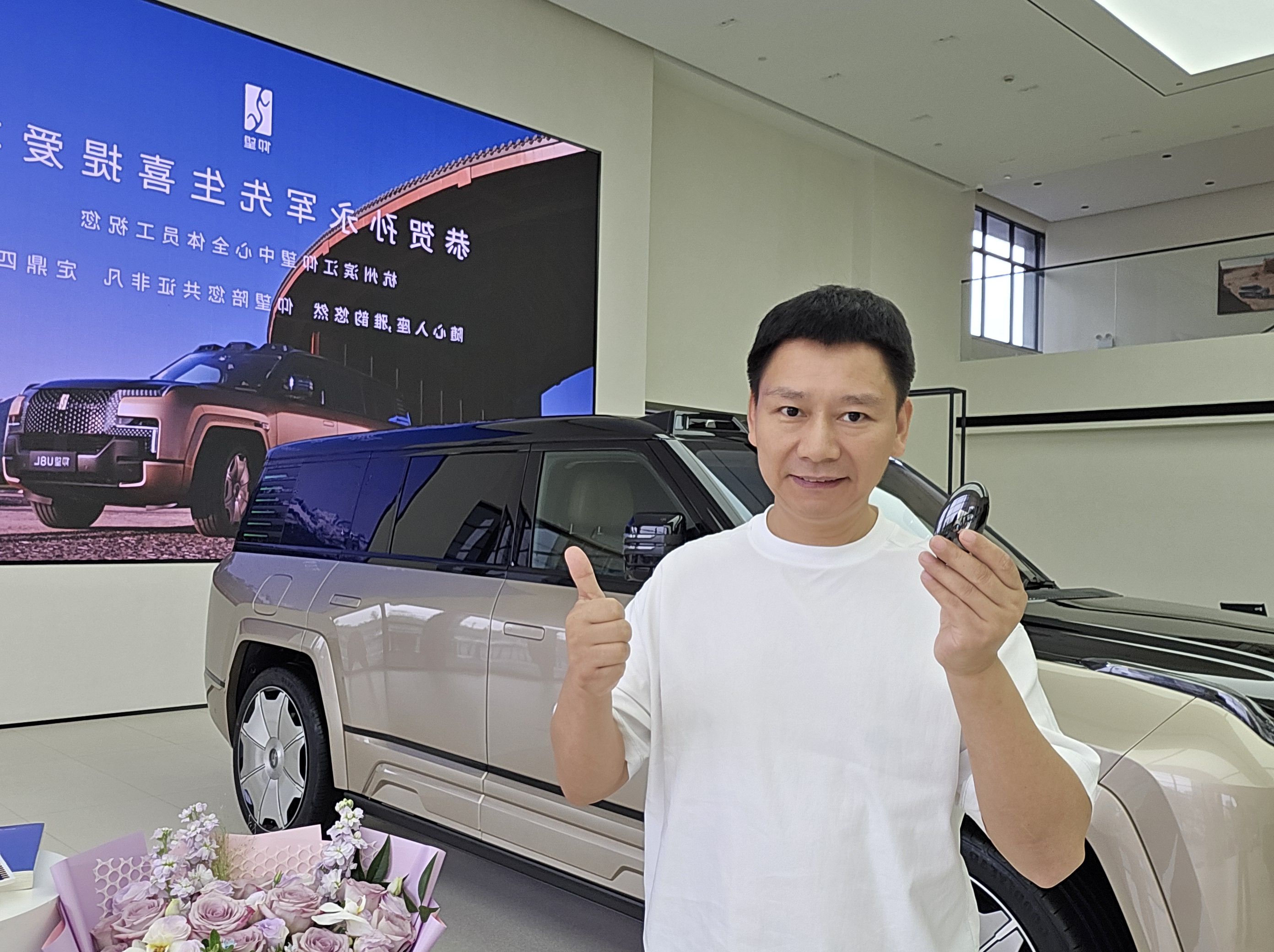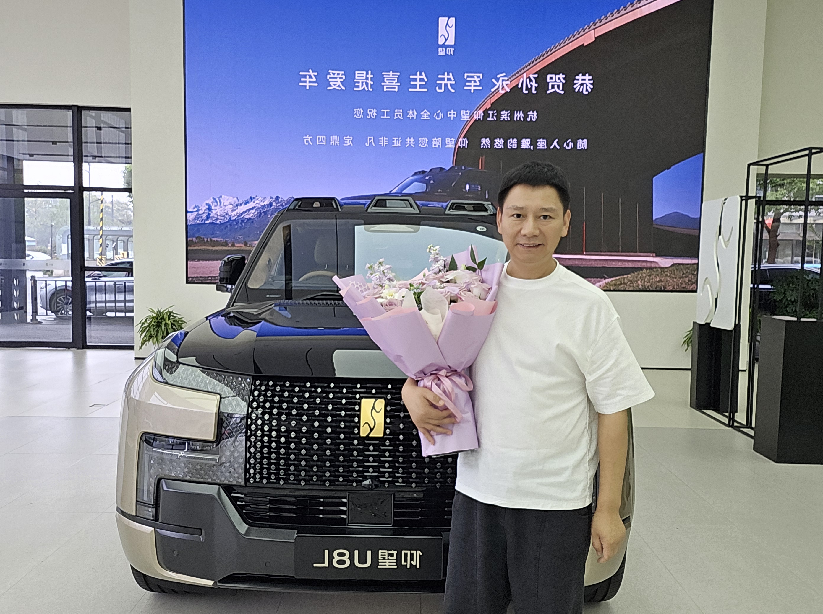 仪式现场细节满是巧思:印有“中国智造 共启新程”的鲜花礼篮中,杭州本地桂花枝与金色尤加利叶相互映衬,淡淡的花香与新车的皮革清香萦绕在空气中;大屏幕上,金色仰望U8L的研发历程缓缓铺展——从极寒雪地中的平稳测试,到高原山路间的从容穿梭,从风洞实验室里的气流优化,再到碰撞测试中的满分答卷,每一段画面都在诉说这款百万级豪华SUV的技术硬实力。而这背后,正是中国自主品牌打破进口豪华车数十年垄断的又一次关键跨越。