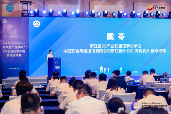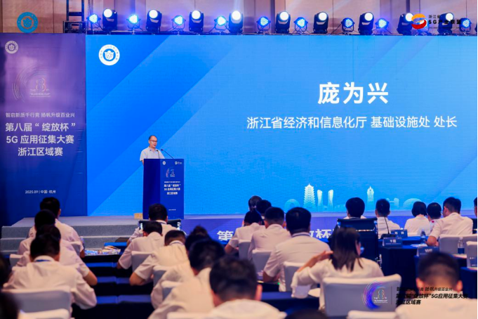 2025年9月28日,由浙江省5G产业联盟主办的第八届“绽放杯”5G应用征集大赛浙江区域赛在杭州成功举办,浙江省通信管理局党组成员、副局长王鹏、浙江省经济和信息化厅基础设施处处长庞为兴、浙江省5G产业联盟理事长单位中国联合网络通信有限公司浙江省分公司党委委员、副总经理戴苓出席并致辞。